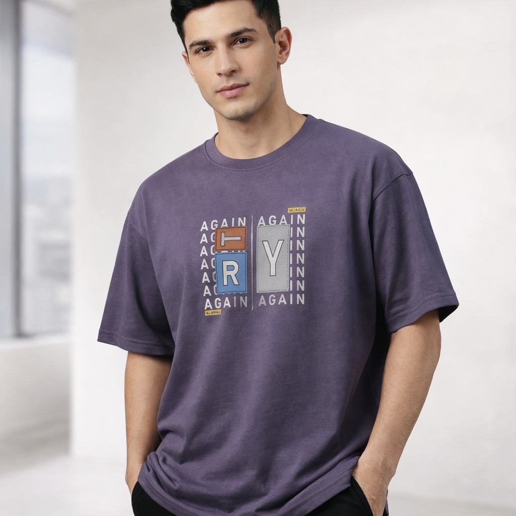 Add a fresh and expressive touch to your wardrobe with this graphic print casual t-shirt. Designed with a modern typography layout on the front, this t-shirt stands out with its “FRY AGAIN” style graphic pattern that brings a trendy and youthful vibe.